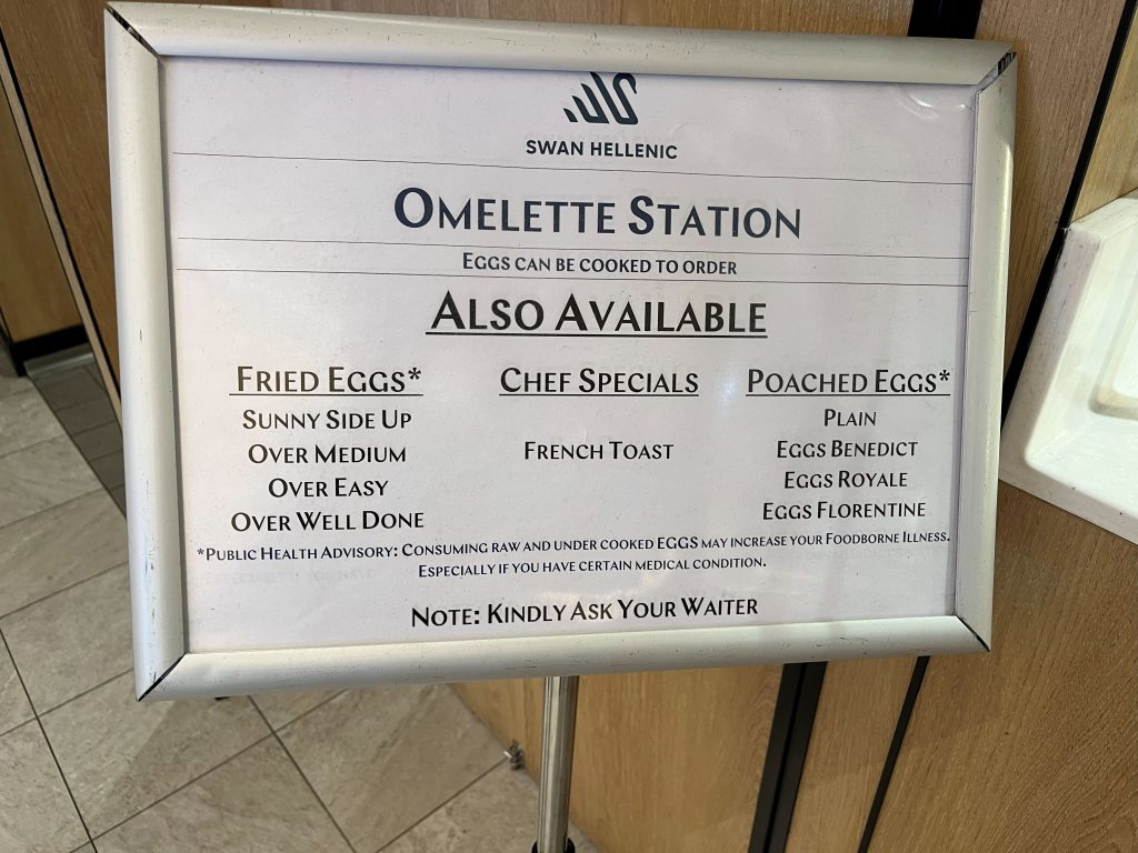 Eggs: they allows for 800 eggs per day. Not only for breakfast but for pastry and deserts too.