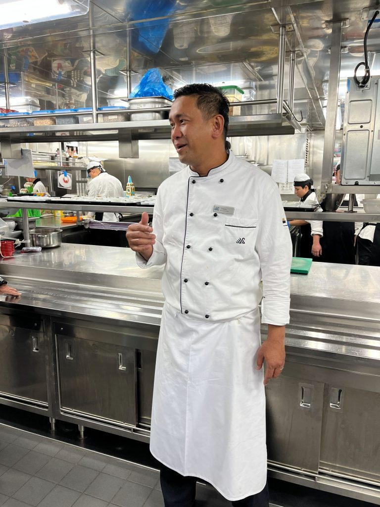 The head chef, Ernesto, is Filipino, as are 98% of his kitchen staff. This is the smallest ship he has worked on.