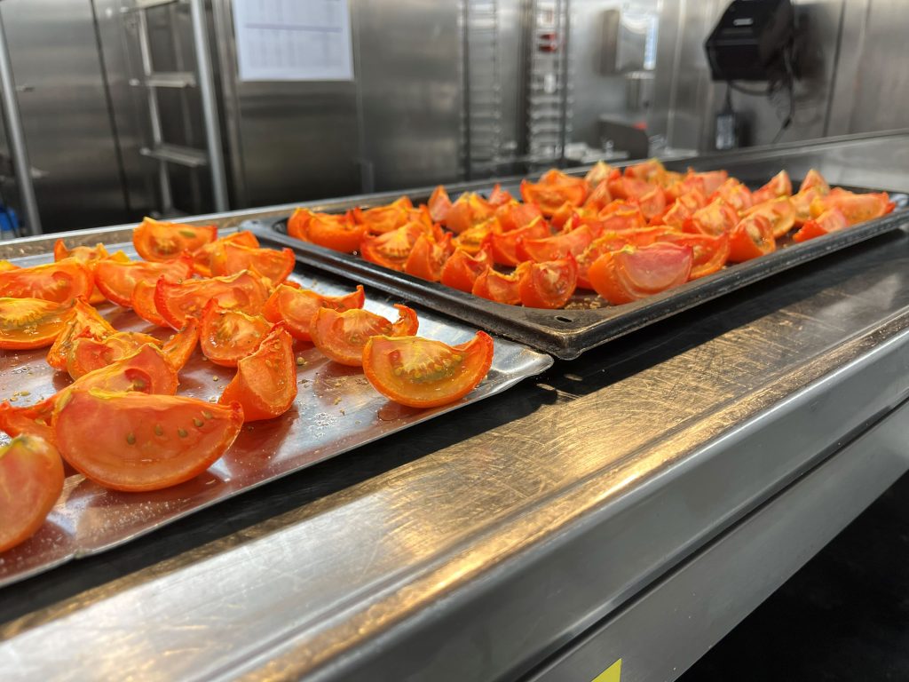 Tomatoes: are bought in varying degrees of ripeness to last the voyage.
