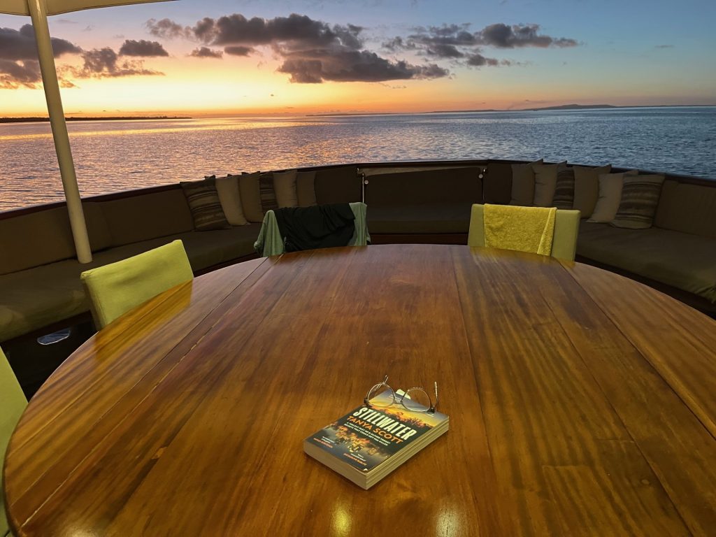 After the Zodiac is safely tethered at the resort’s wharf, I stand, ready to ascend from the boat, our dive guide, Mali, insists I hold his hand while making the step between the rubber gunwhale and the bottom wooden step. I hope he’ll still be with me in twenty years’ time (when I might need it). Climbing up the steep stairway, I vaguely wonder where my luggage is. The bag I checked onto the plane will, I have been assured, appear in my cabin by the time I board the Pelagian. The resort’s dedicated dive boat will be my home for the next week before I return to stay at the resort for the final four days of my holiday. But where is my carry-on? It was last seen going into the back of the immaculately clean SUV.