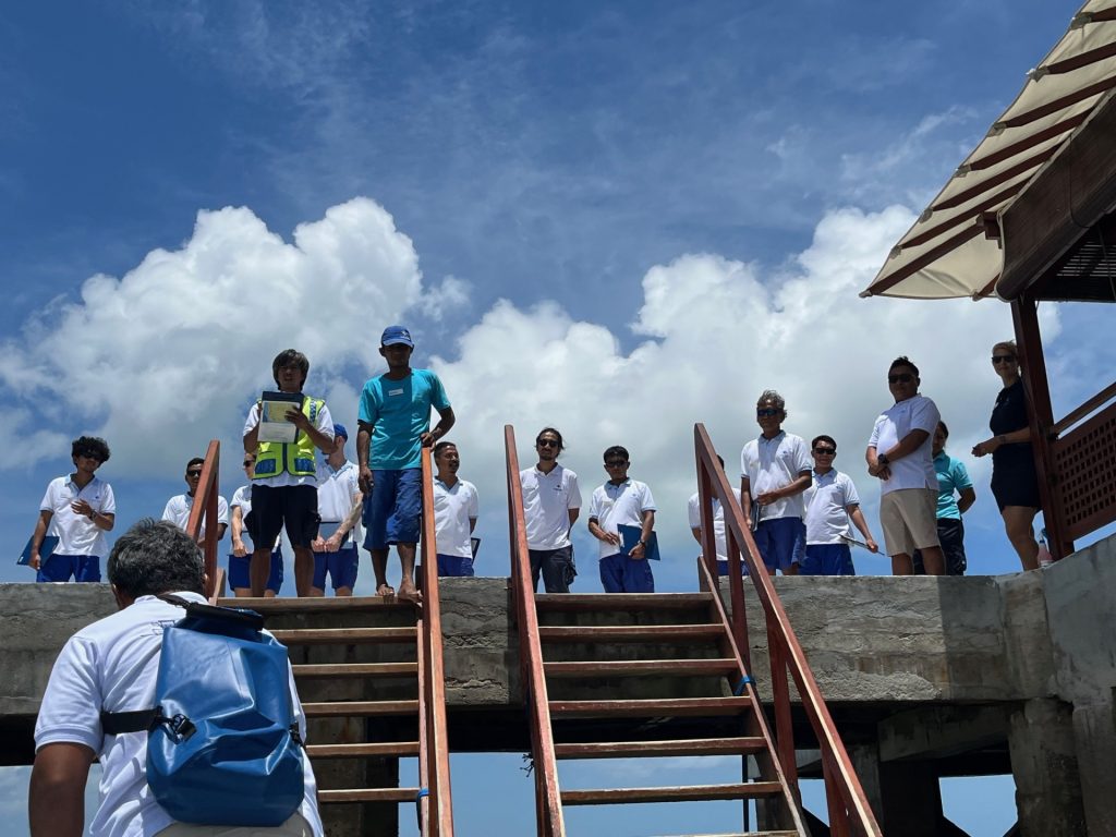 Every one of us who steps onto the pier — a him or a her or, – most often, a her and a him, is escorted by a staff member into the resort and, I’m guessing, most are shown to their bungalow or villa. Those of us bound for the Pelagian are asked to meet Mali in the longhouse — the original resort building — at the end of the pier. There we will be outfitted with dive gear before taking lunch at the resort’s restaurant. And if we have trouble pulling on our wetsuits, or remembering our sizes, rest assured there will be someone there to help. I could get used to this.